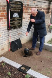 Redaktorzy Sławomir Iwanowski i Krzysztof Korbiel z pisma Polonii austriackiej „Polonika“ podjęli starania o odnalezienie śladów grobu Ossolińskiego. Prowadzili rozmowy z archeologami, analizowali stare księgi cmentarne oraz plany kwater. Dzięki ich pracy udało się w przybliżeniu określić miejsce pochówku, skąd pobrano ziemię, złożoną następnie w symbolicznym grobie pod tablicą upamiętniającą wielkiego Polaka.