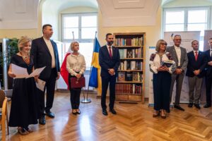 Prof. dr hab. Irina Matiasz wyraziła nadzieję, że półka z książkami stanie się nie tylko źródłem wiedzy, ale również platformą do spotkań i dialogu międzykulturowego. „Chciałabym, żeby ta półka nie była tylko statycznym elementem naszej biblioteki, ale by stała się pretekstem do organizowania spotkań, dyskusji i wydarzeń, które będą angażować zarówno Polaków, jak i Ukraińców. Tematy, które poruszają nasze książki, są istotne nie tylko dla Ukraińców, ale również dla polskiego społeczeństwa, dlatego liczę na to, że będą one inspirować do głębszego zrozumienia naszych wspólnych doświadczeń” – powiedziała prof. Matiasz.
