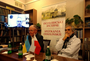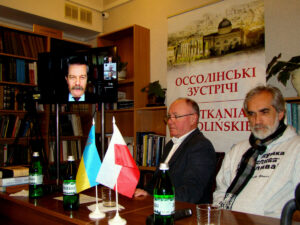 Gośćmi spotkania byli prof. Przemysław Żurawski vel Grajewski (Uniwersytet Łódzki) i prof. Jarosław Hrycak (Ukraiński Uniwersytet Katolicki). Z powodu częstych rosyjskich ataków rakietowych profesor Żurawski nie przyjechał do Lwowa, ale połączył się z zebraną we Lwowie publicznością za pośrednictwem Internetu. Niestety, transmisja została przerwana z powodu wyłączenia prądu we Lwowie. Prof. Żurawski kontynuował swój wykład online, a w tym samym czasie profesor Hrycak, przy świetle latarek, rozpoczął swoje wystąpienie w Bibliotece im. W. Stefanyka. Film jest efektem zmontowania obu wykładów, z tłumaczeniem symultanicznym z języka ukraińskiego na język polski.