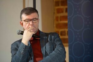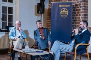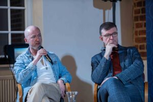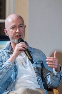 Jacek Dukaj – prozaik, eseista, krytyk. Autor m.in. Czarnych oceanów, Innych pieśni, Perfekcyjnej niedoskonałości, Lodu, Wrońca, Starości aksolotla oraz licznych opowiadań – w tym zekranizowanej przez Tomka Bagińskiego Katedry – zgromadzonych m.in. w tomach W kraju niewiernych oraz Król Bólu. Autor eseju rzeki Po piśmie, ukazującego ludzkość wchodzącą w epokę postpiśmienną. Tłumacz reinterpretator Serca ciemności Conrada. Wielokrotny laureat Nagrody im. Janusza A. Zajdla, kilkakrotnie nominowany do Paszportu „Polityki”, także do nagród Nike i Angelusa; laureat Nagrody Fundacji im. Kościelskich i Europejskiej Nagrody Literackiej. Na podstawie powieści Starość aksolotla Netflix wyprodukował serial Kierunek: Noc.