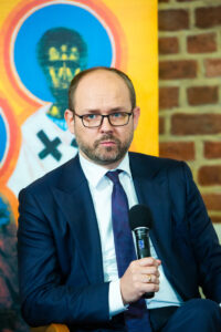 W pierwszej części spotkania o wpływie historii na współczesność opowiadał wybitny ukraiński historyk, Jarosław Hrycak, w rozmowie z Łukaszem Galuskiem, zastępcą dyrektora Międzynarodowego Centrum Kultury w Krakowie.