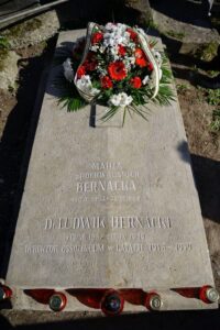 Wobec tego dyrektor Zakładu Narodowego im. Ossolińskich, Adolf Juzwenko, zdecydował się zorganizować symboliczny pochówek Ludwika Bernackiego i umieścić w rodzinnym grobowcu Bernackich urnę z garstką ziemi z miejsca pierwotnego pochówku. Na płycie nagrobka znalazła się dwujęzyczna plakietka o następującej treści: